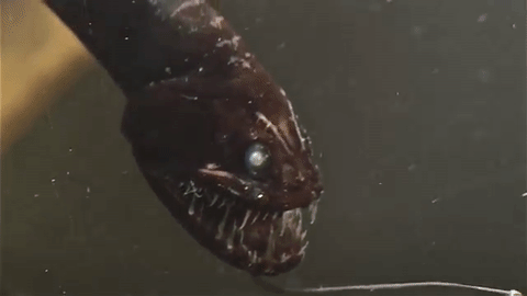 With a transparent head and odd, barrel-shaped eyes, this looks more like a submarine than a fish. Like hatchetfish, their eyes generally face upward, allowing them to search for prey above them as they float motionlessly in the water – but they can rotate them forward as necessary.