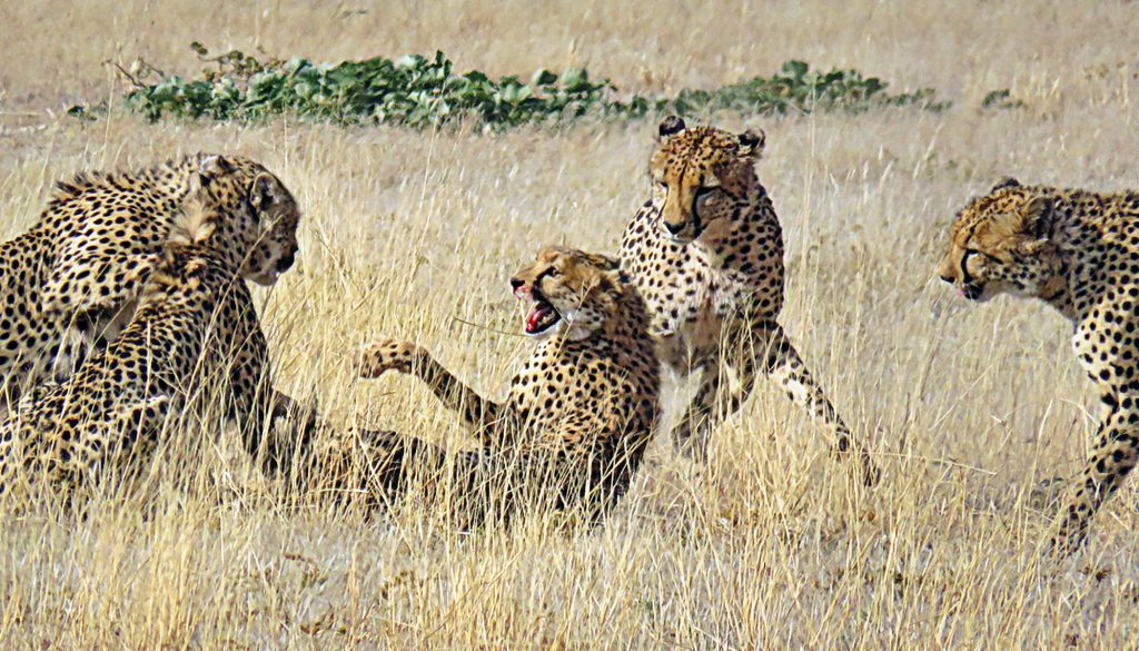 This amazing cheetah encounter played out in the Kgalagadi Transfrontier Park in South Africa. 4 cheetahs were not too happy to have a solo cheetah enter their territory…