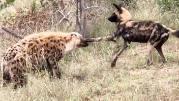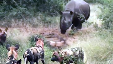 The amazing interaction was caught on camera by Renier Joubert. He described the sighting: We arrived at the waterhole and saw the dogs and the hippo interacting. It was almost as if they were playing with one another. There was no kill close by that we could see. On the one video you can see that the […] More
