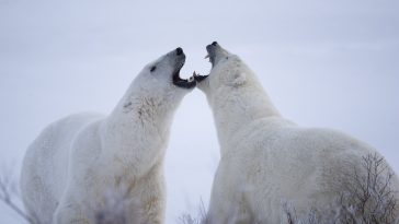 A photographer captured the intense moment two polar bears engaged in an aggressive session of play fighting… More