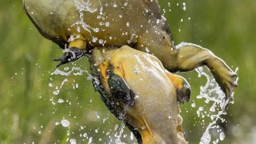 These dramatic pictures show two lions in a dramatic fight for dominance. Seething with anger, the lions sent fur flying through the air when they came claw to claw in an intense battle. The snarling lions were clearly in disagreement about something when they began ferociously roaring at one another in Kruger National Park, South […] More
