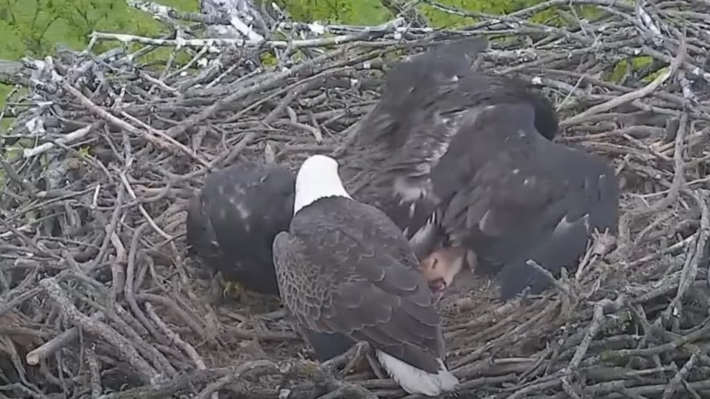 This footage came to us via a live-streaming webcam trained on a bald eagle nest and family in Decorah, Iowa, which is broadcast on Exlore.org. These live eagle cams have captured some pretty amazing footage over the years. Click here to watch one such video, in which a sly fox attempted to get into a bald eagle nest… and got more than he bargained for!