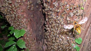 Meet the Japanese giant hornet: massive, extremely aggressive, and a honey bee’s worst nightmare. A single giant hornet can kill 40 European honey bees in one minute, and a group of 30 could wipe out an entire hive of 30,000 European honey bees in little more than three hours. Growing up to 2 inches in length, with […] More