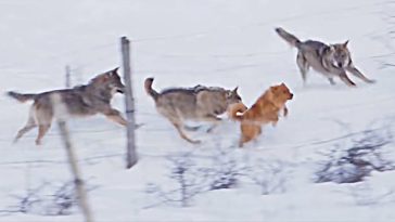 A brave dog was captured on video holding its ground against a pack of wolves. The footage, documented by Abruzzo local Paolo Forconi in southern Italy, shows three tenacious wolves nipping at the pup’s heels as it looks for an escape along a barbed wire fence. The canine — likely a livestock guardian or working […] More