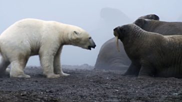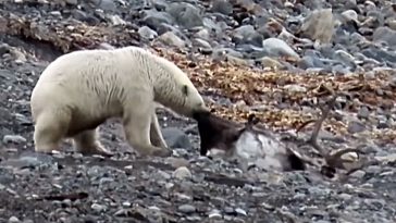 In a bold and risky move, a desperate mother polar bear approached and pawed at a massive sleeping walrus in hopes of finding some nourishment for herself and her starving cub. Solo bears don’t generally attempt to take on a walrus of this size by themselves, especially in this unhealthy condition, but she was likely […] More