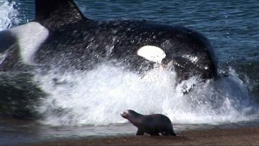 Killer Whale Slides Onto Beach To Capture Seal
