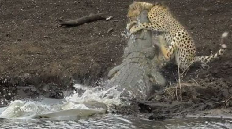 A young, unsuspecting cheetah was attacked and dragged into the water by a hungry crocodile in some incredible footage captured recently during a live safari stream.