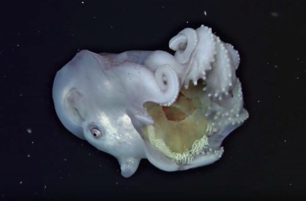 A rare and mysterious octopus was recently filmed with prey for the first time ever, and it turns out it eats jellyfish.