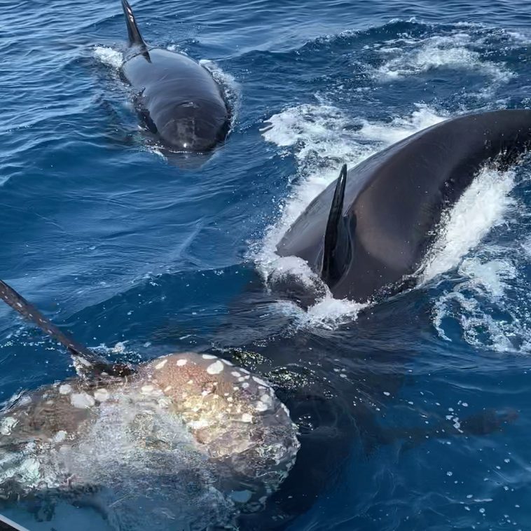 A pod of killer whales were filmed playing with a sunfish in some incredible footage recently filmed off the coast of Mexico.