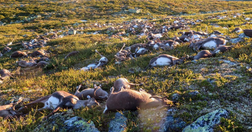 Over 300 wild reindeer were found dead following a lightning storm in Norway.