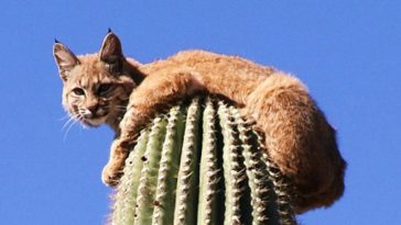Bobcat Climbs 40-Ft Tall Cactus to Evade Mountain Lion