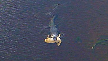 Massive Alligator Swimming With Whole Deer in Its Jaws