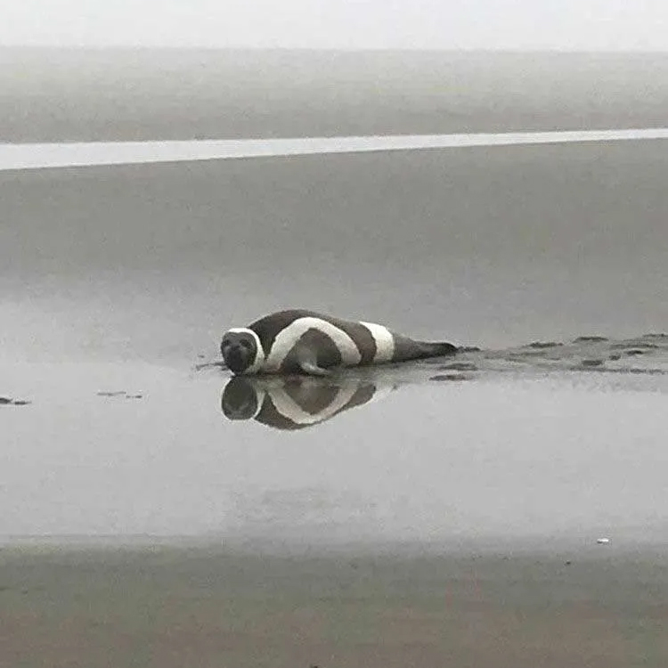 Another one of these unique seals was recently spotted on the shore of a beach in Washington.