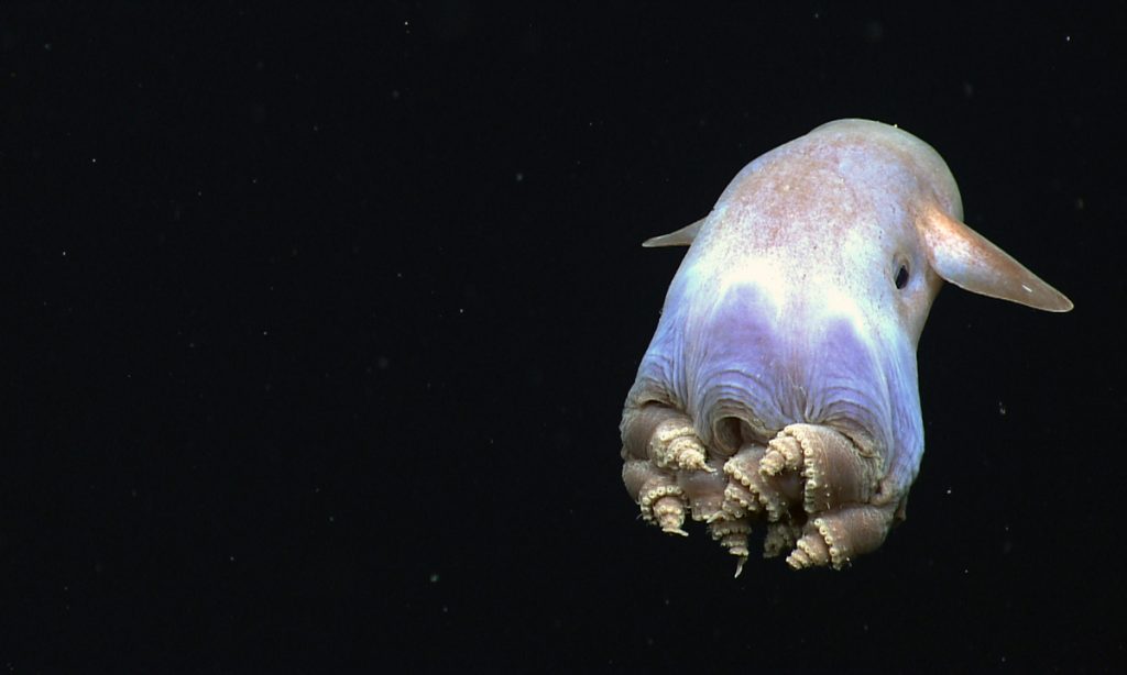 In the deepest, darkest parts of the ocean are otherworldly and sometimes nightmarish creatures that still remain a mystery even for scientists. While we’re grateful that we rarely have to cross with these animals, it’s also fascinating to get a peek at the remarkable beings that lurk below the ocean. Keep reading to see some of the strangest deep-sea creatures ever discovered.Dubbed “the world’s ugliest animal,” this sad-looking fish gets its name from its gelatinous body, which is less dense than water and allows it to float effortlessly. Blobfish (Psychrolutes marcidus) live in waters near Australia and New Zealand between 2,000-4,000 feet, where the pressure is up to 120 times higher than it is at sea level. The fish’s lack of muscles and buoyant body is perfect for that environment — it only gets its droopy look once it has been removed from the water.The frilled shark is considered to be a “living fossil” because of its resemblance to its primitive ancestors. The eel-like fish sports 6 pairs of gills that run all the way across its throat.Named after the Disney elephant, these octopuses have a pair of giant protruding fins, which they use to propel themselves upward, while their umbrella-like arms help them steer.These eerie creatures are part of an order of fish called chimaera, which have been around longer than dinosaurs. Their evolutionary line branched off from sharks 400 million years ago, placing them in their own category. Their large, creepy eyes can appear dead in water but glow when exposed to light.See those long canine-like teeth? They can crush the shells of mollusks, crabs and sea-urchins with ease. Atlantic wolffish live at depths of up to 2,000 feet off the coast of New England and can produce a natural antifreeze that keeps their blood flowing properly in freezing water.Named after their distinctive method of hunting, anglerfish have a built-in fishing rod-like appendage that dangles from their heads and emits light to lure other fish within eating range.Pucker up! These fish look as if they’re wearing bright red lipstick. They are terrible swimmers, but they can use their adapted pectoral and pelvic fins to “walk” on the seafloor. The red-lipped batfish is just one of 60 species of batfish.The first thing you’ll notice about this weird-looking animal is its massive mouth, which is much bigger than the rest of its body and can swallow things larger than itself. Gulp! Lucky for us, it typically feeds on small crustaceans.Not much is known about this strange and elusive creature. There are goblin sharks as long as 13 feet (4 meters), though they may be able to grow much larger! Apart from their noticeably long snouts, goblin sharks have protruding mouths that are outfitted with several rows of teeth that can both catch prey and crush through shellfish.Not to be confused with freshwater hatchetfish, these deep-sea creatures are named after their shape. Look closely and you’ll notice a row of luminescent organs lining its belly like a blade.These bad boys take their food seriously. They hunt by burying themselves in sand and pouncing on unsuspecting prey as they swim by.Sea pigs are a group of deep-sea echinoderms with enlarged tube feet — they use water cavities in the skin to inflate and deflate the appendages. These unusual creatures grow to approximately 6 inches in length and are generally found anywhere from 4,000 to 16,000 feet below the ocean’s surface. You can find them in the Atlantic, Pacific, and Indian oceans feeding on organic particles from deep-sea mud.