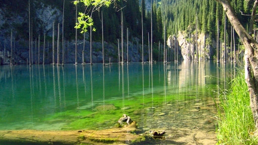 How did it get there? This area didn’t use to be a lake at all, but a thriving spruce forest in the mountains of Kazahkstan. A tremendous earthquake in 1911 triggered a landslide that blocked the gorge, creating a natural dam. Eventually, rainwater filled the valley behind the dam, encapsulating the spruce trees and creating this insanely beautiful but strange lake. Scroll down to watch the video below…